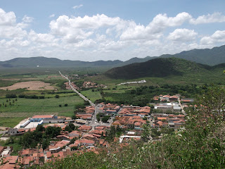 Do alto, temos uma vista maravilhosa da cidade, campos e estradas.