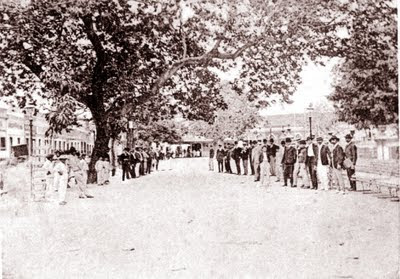 A foto mais antiga, que data aproximadamente de 1907, traz um dos momentos de reunião dos habitues da Praça do Ferreira que no Cajueiro da Mentira ou Cajueiro Botador, contavam suas histórias, seus “causos”, seus contos, enfim, dão vazão a seus espíritos criativos.